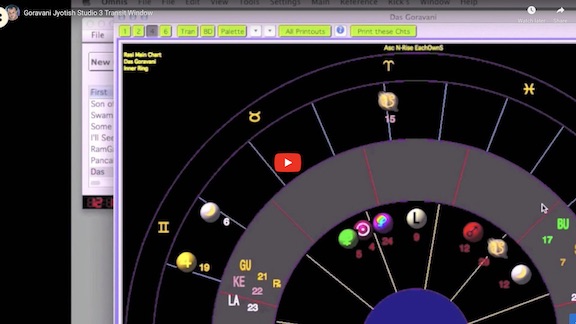 Videos are a Great Way to Learn ! Below are some videos about Jyotish Studio, and as well some lectures on parts of Jyotish, and an Interview of Das Goravani by Kapiel Raaj of the KRSchannel. When watching these, if you want to go full screen, click the YouTube logo in the lower right corner of the video for "Watch on YouTube", then you can click the expand to full screen box. Alternatively you can just make your browser screen-wide and they will be more or less full screen.