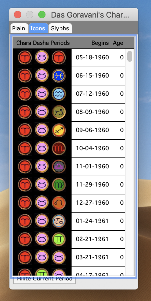 Chara Dasha in Icon View Mode. Very beautiful and gives more info via color.