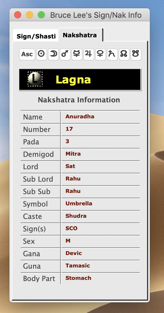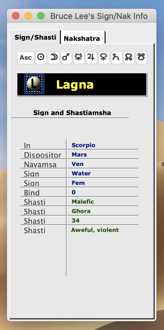 Info about the sign and shastiamsha of the planet clicked at the top.