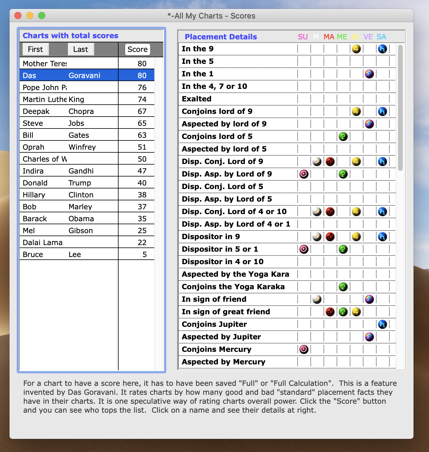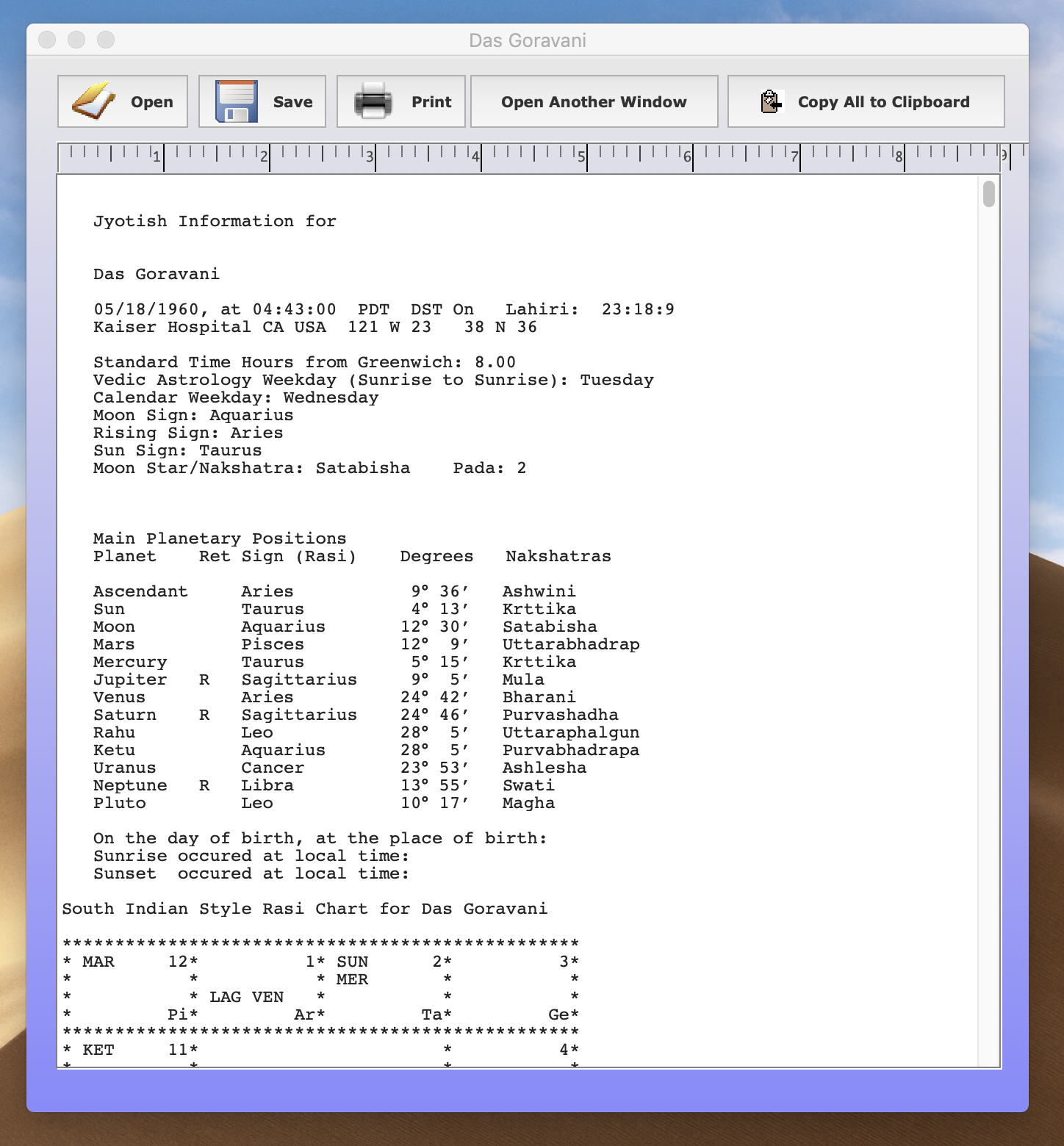 Below are many features that don't fall into a particular category like others do. So we've grouped them here a picture for each with explanations as to what you're looking at. This shows how rich the Vedic Astrology Jyotish Software Program Jyotish Studio really is.